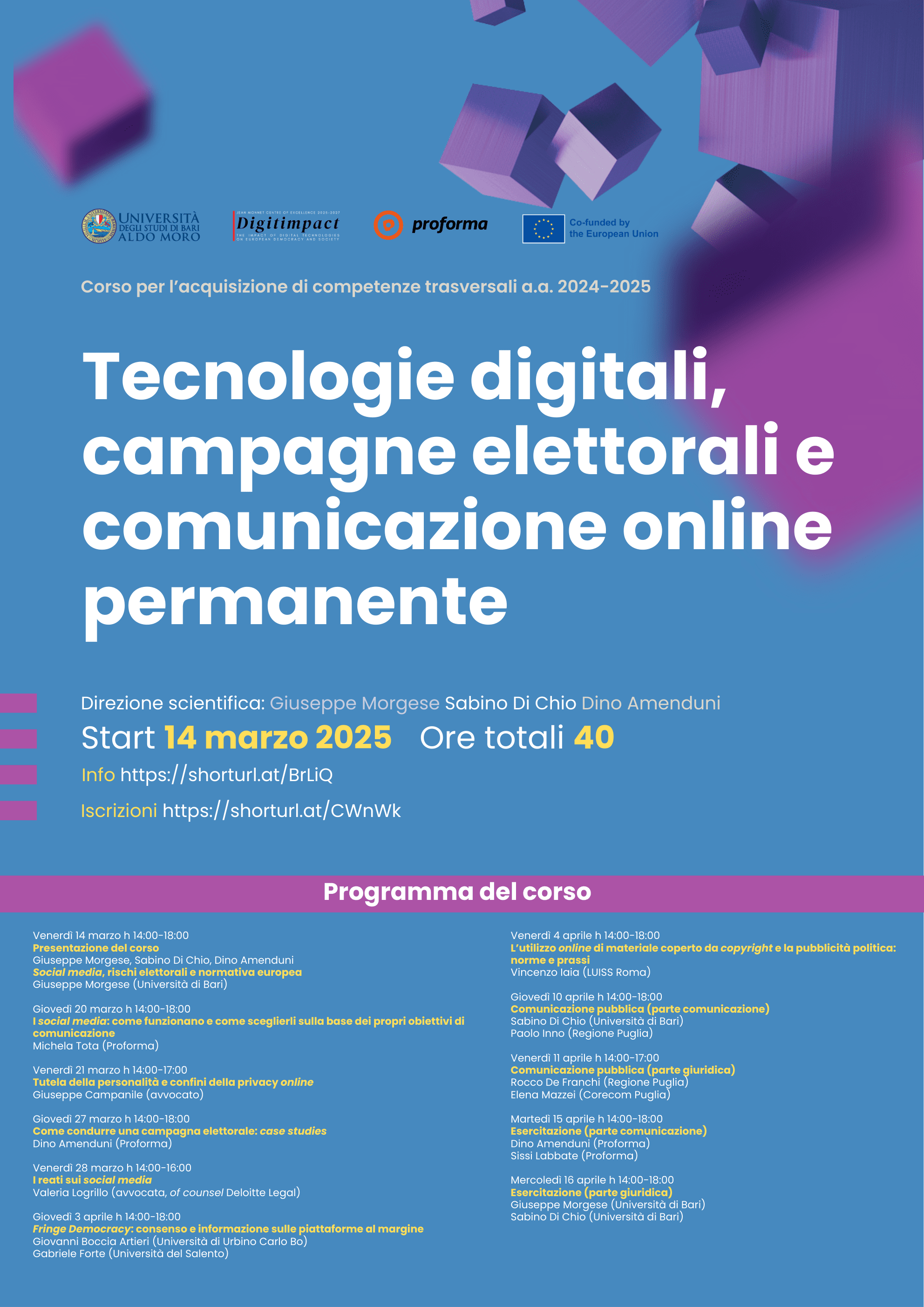 Corso di “Tecnologie digitali, campagne elettorali e comunicazione online permanente”