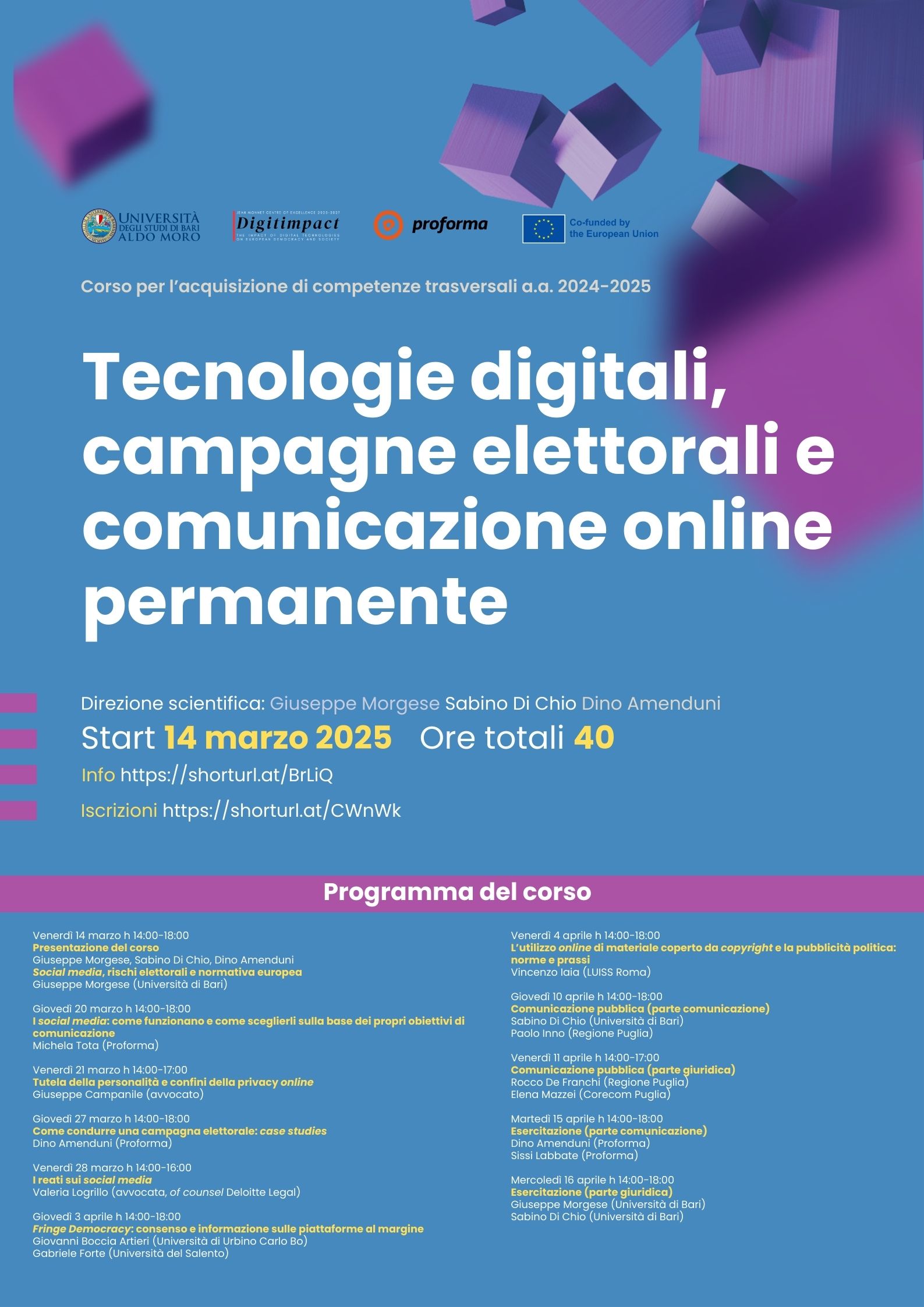 Corso di “Tecnologie digitali, campagne elettorali e comunicazione online permanente”